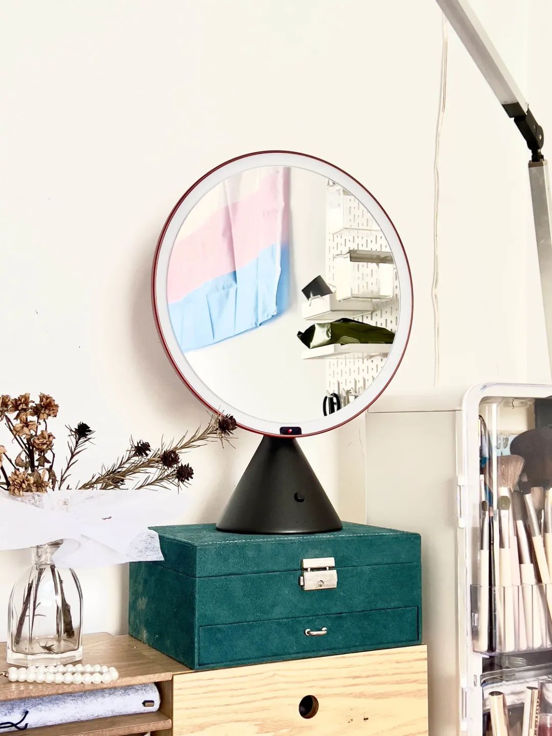 要解决这个问题还是需要靠化妆镜,它所自带的灯光能够在近距离照亮整个脸部,让我可以看清皮肤的各个细节,同时减少偏色,让别人眼中看到的我和我在化妆镜里看到的自己尽可能像是同一个人。至于化妆镜的选购这里其实没有太多好说的,毕竟橙红在先看就已经做过了,我需要做的只是闭着眼睛上车。