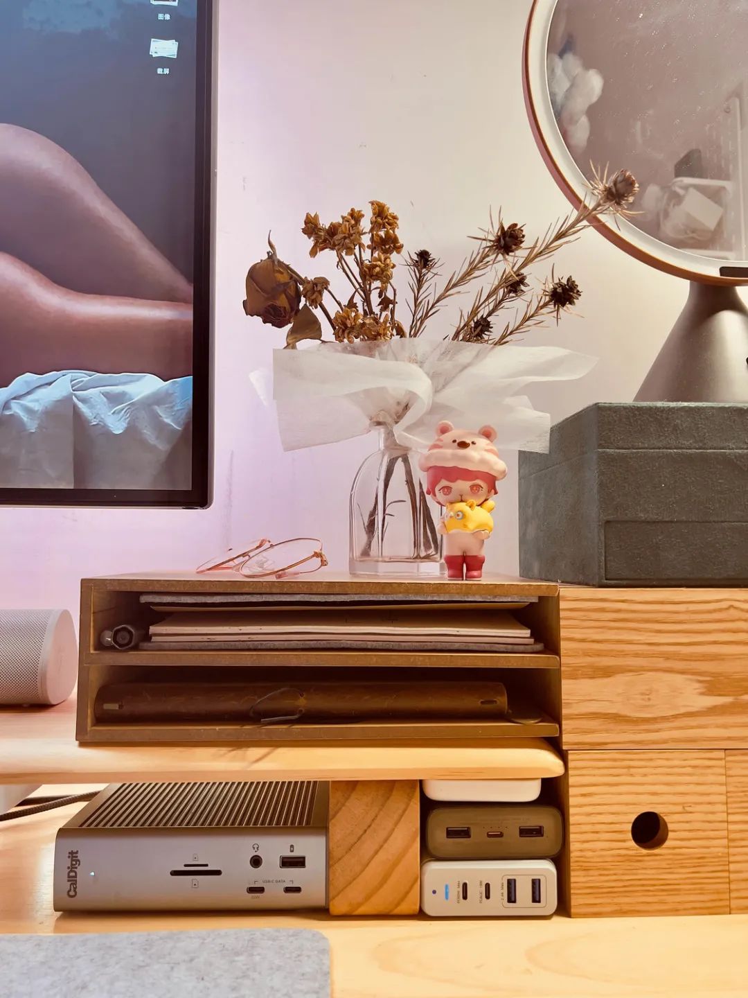 然而面对着我日益增加的桌面布置需求,它也开始力不从心。在桌面上找不到位置的新设备和散落各处的化妆品不断提醒我,断舍离总归会来。