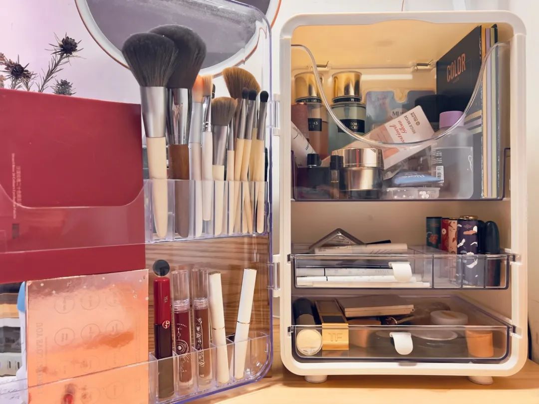 被挤到斗柜上的化妆品们,每次拿取都很不方便