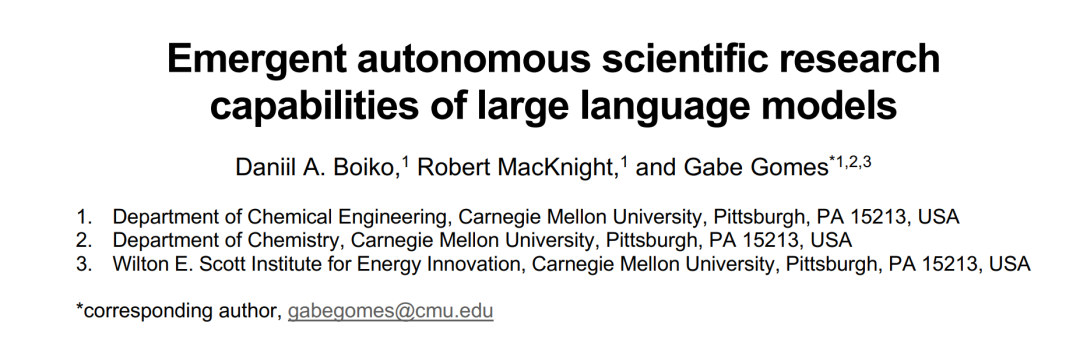 基于transformer的大型语言模型在机器学习研究领域迅速发展,其应用范围跨越自然语言、生物学、化学和计算机编程。来自人类反馈的扩展和强化学习显著提高了生成文本的质量,使这些模型能够执行各种任务并对其选择进行推理。本文提出一个智能体系统,结合多个大型语言模型进行自主设计、规划和科学实验的执行。我们用三个不同的例子展示了智能体的科学研究能力,其中最复杂的是催化交叉耦合反应的成功表现。最后,我们讨论了此类系统的安全影响,并提出了防止其滥用的措施。