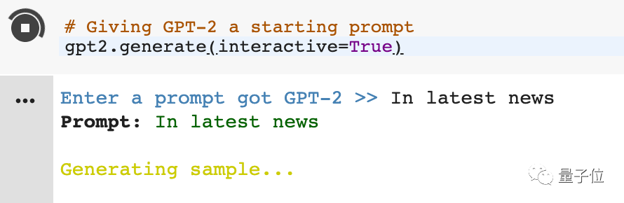 gpt2.generate (interactive=True) # 要求用户输入提示