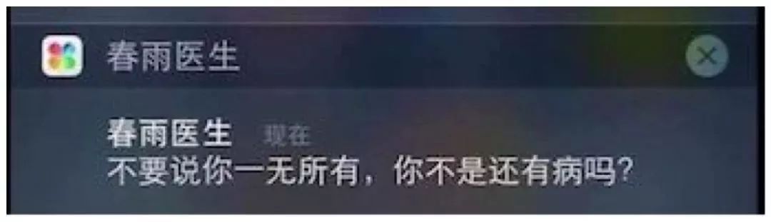 说回网易云音乐,如果真的特别想继续玩黑色幽默,完全可以根据用户习惯,个性化生成通知嘛。比如:“你这么爱听英文歌,英语一定还很不好吧,六级过了吗?” 没准 App 的打( shan )开( chu )率会进一步提高呢~