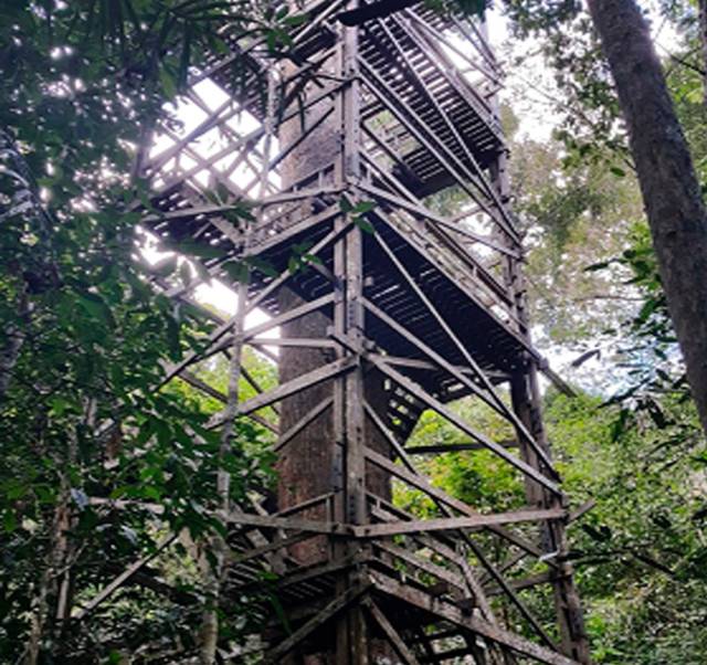 日本科学家在马拉西亚Lambir Hills国家公园直接围着树建了环形楼梯。图片:Forest Department Sarawak