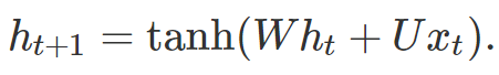 其中 x_t 是时刻 t 的输入,φ 是可微分映射,h_0 是初始状态。在一个最原始循环神经网络中,该模型由矩阵 W 和 U 参数化,并根据下式更新状态:
