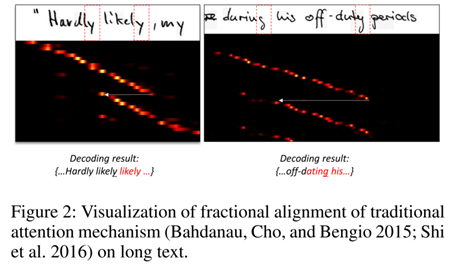 然而,当前注意力机制的对齐操作依赖于上一步的解码信息,这就导致了一旦上一步解码出错或具有迷惑性,注意力机制的对齐将产生错误,且此错误会累积传播。这一问题在较长的手写文本上体现得较为明显。