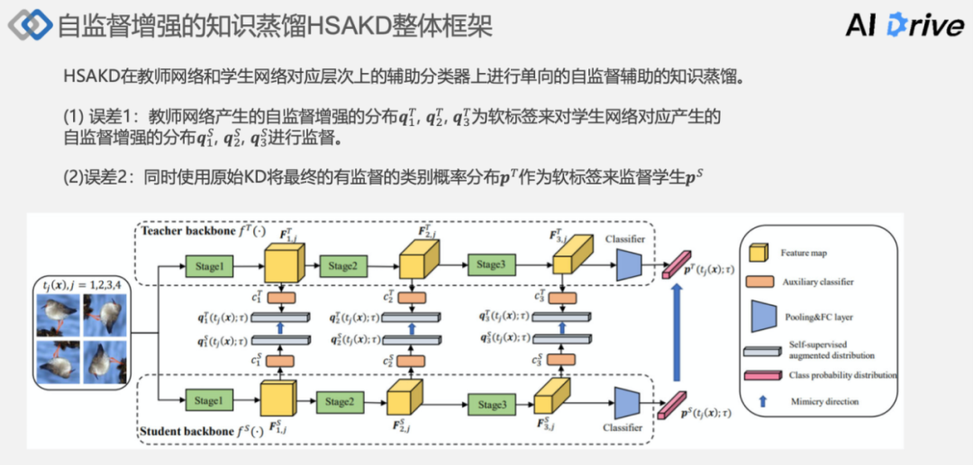 上图展示了自监督增强知识蒸馏框架:HSAKD 的整体的流程。