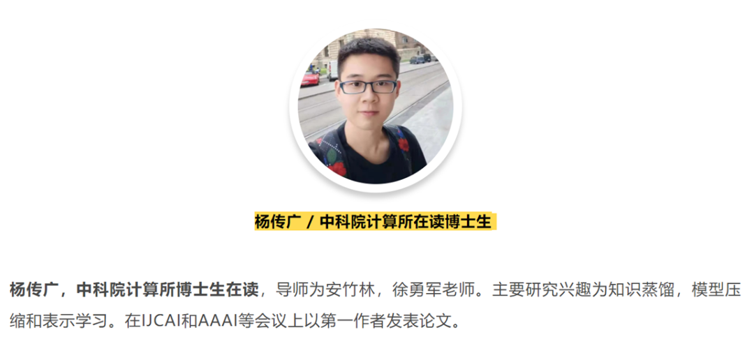 近日,AI Drive 邀请中科院计算所在读博士生杨传广,分享其在 IJCAI 2021 上发表的最新工作:自监督增强的知识蒸馏。