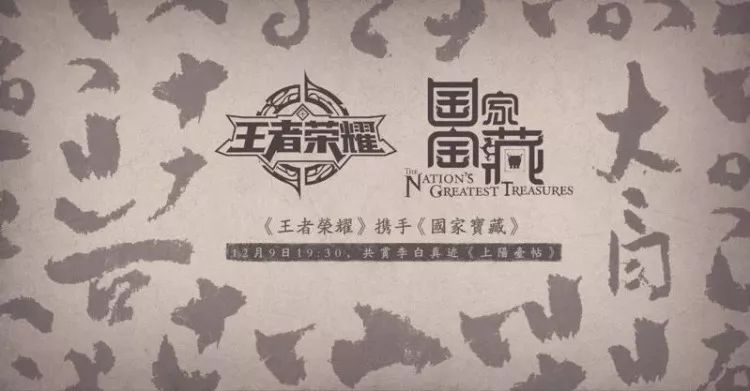 2018年12月9日,当期的《国家宝藏》开播,出现了李白的名作《上阳台帖》,谪仙李白的千古风流,中国文化的源远流长,在这幅仅仅25字的字帖中得到了最好的体现。《王者荣耀》也在同期上线了上阳台贴内容,和《国家宝藏》一起将李白的故事传递给更多人。