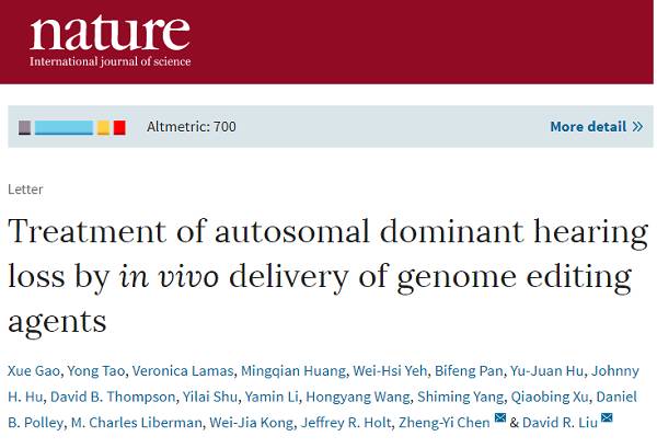 参考资料:1)CRISPR treatment prevents hearing loss in mice