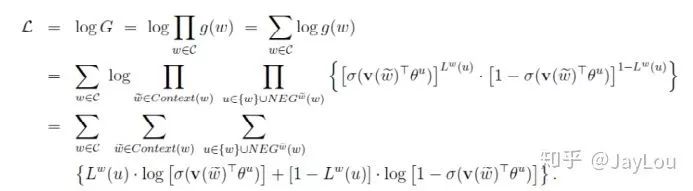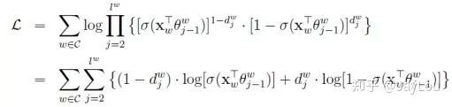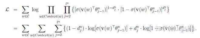 CBOW中的目标函数是使条件概率 最大化,其等价于: