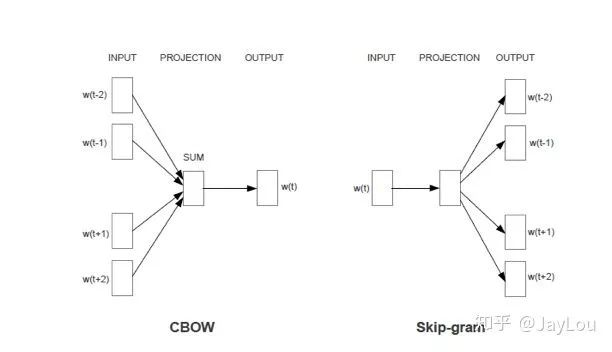word2Vec 有两种模型:CBOW 和 Skip-Gram: