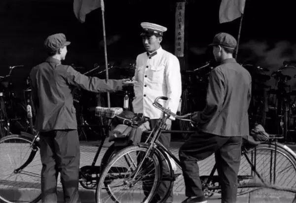1978年,狭窄的街道上交警正在执法。那个时候,大街上自行车是最多的。