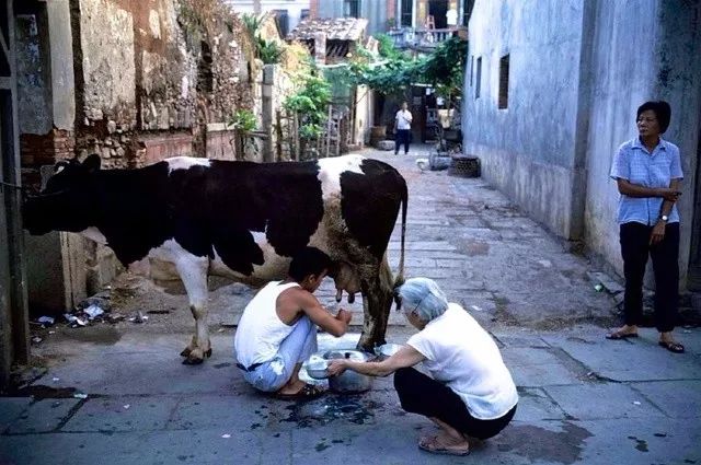 1986年,那时候牛奶是这样卖的。现在的我们很难想象,“新鲜直送”不是快递上门,而是把奶牛牵到消费者家门口。