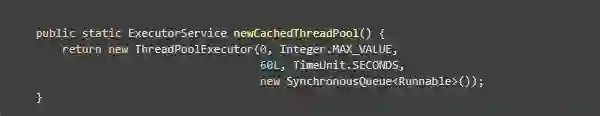 非常有弹性的线程池,对于新的任务,如果此时线程池里没有空闲线程,线程池会毫不犹豫的创建一条新的线程去处理这个任务。