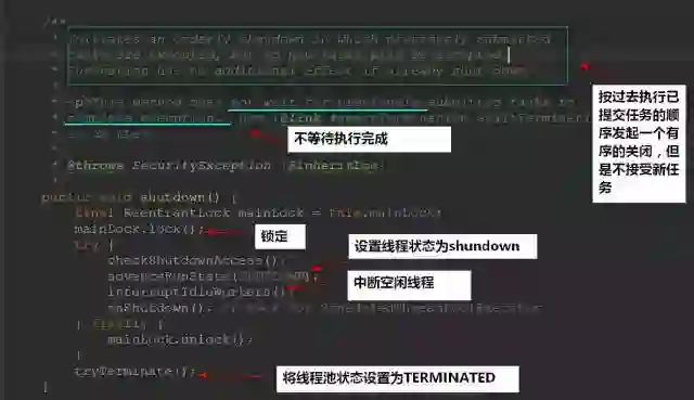 ThreadPoolExecutor提供了shutdown()和shutdownNow()两个方法来关闭线程池