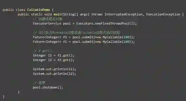 也就是说:当我们的任务需要返回值的时,我们就可以使用Callable!