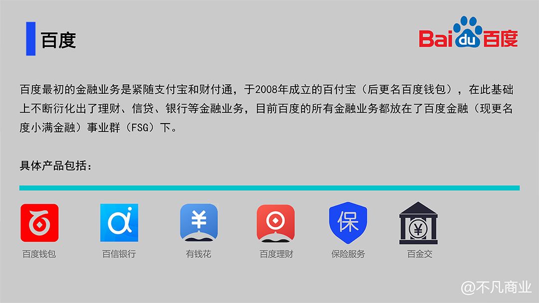 百度钱包:第三方支付业务,百度所有金融业务的起始;