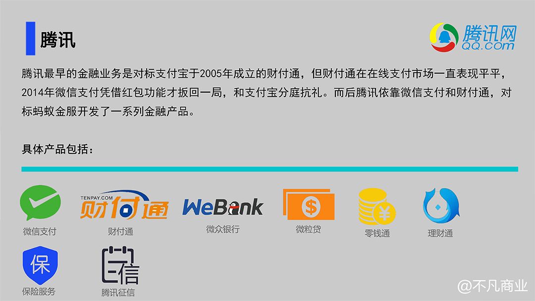微信支付(财付通):第三方支付业务,腾讯金融业务的根基;