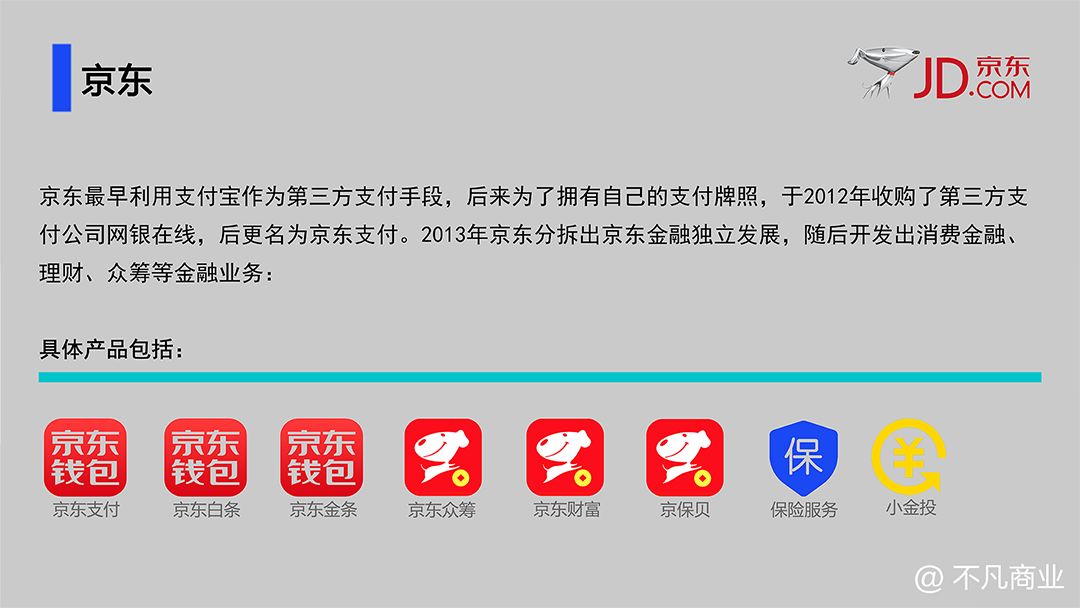保险服务:和蚂蚁金服的保险服务相似,并投资安联财险占股30%,获得了第一张保险牌照;