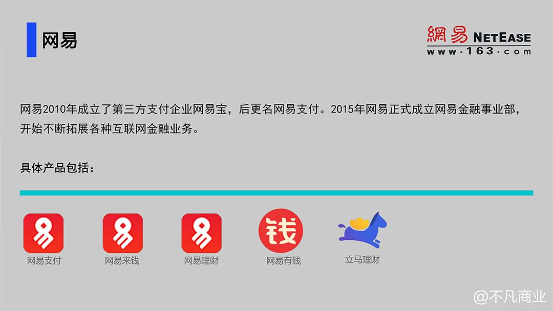 网易支付:原名网易宝,第三方支付业务,也是网易金融的起始业务;