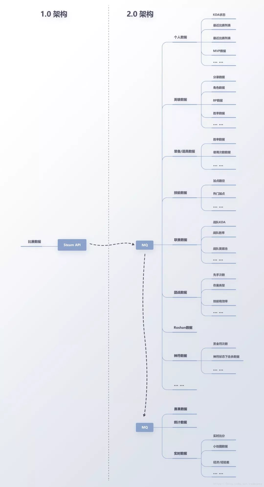 接入分布式存储系统后,对外数据API层也根据扩展的数据维度进行拆分,由多个数据API对外提供服务,例如比赛数据和联赛赛程等数据访问量大,应该与英雄、个人及道具数据分开,防止比赛/赛事接口异常影响所有数据不可访问。