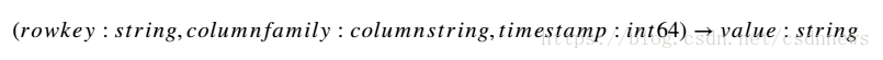 在数据模型上,Bigtable与HBase通过RowKey、列簇列名及时间戳来定位一块数据(Cell,如图6)。