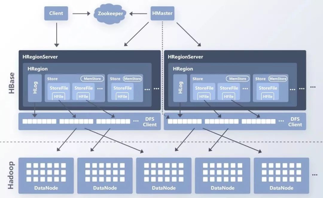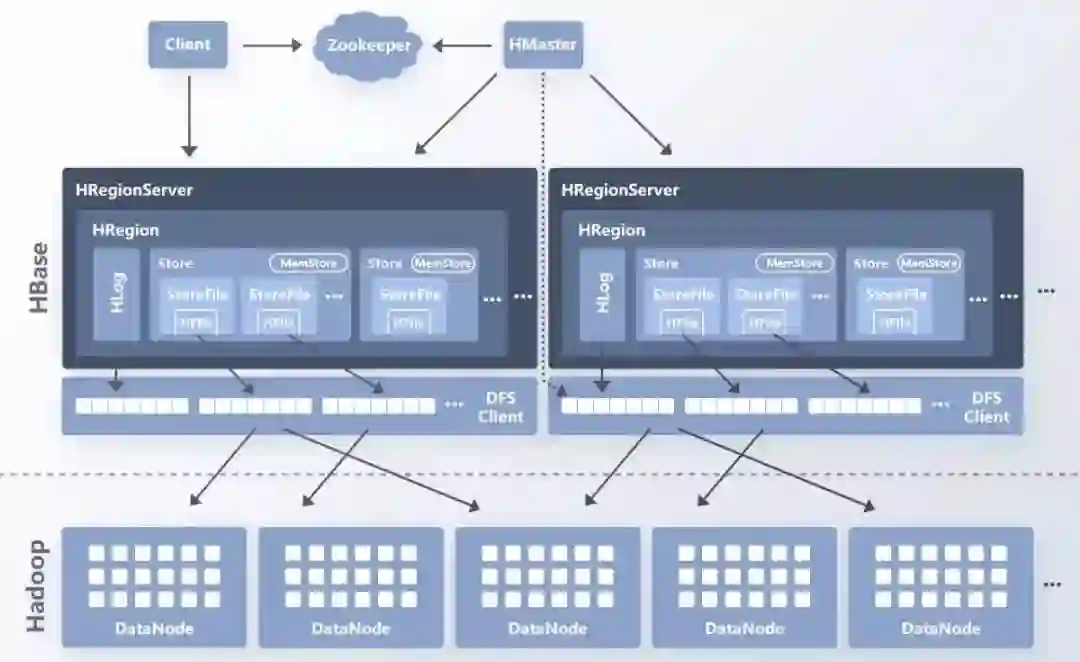 如图8,以HBase为例子,读取数据时,Client先通过Zookeeper定位到RowKey所在的RegionServer,读取请求到达RegionServer之后,再由RegionServer来组织Scan的操作并最终归并查询结果返回数据。因为一次查询操作可能包括多个RegionServer和多个Region,数据的查找是并发执行的且HBase的LRUBlockCache,数据的查询不会出现全部锁死的情况。