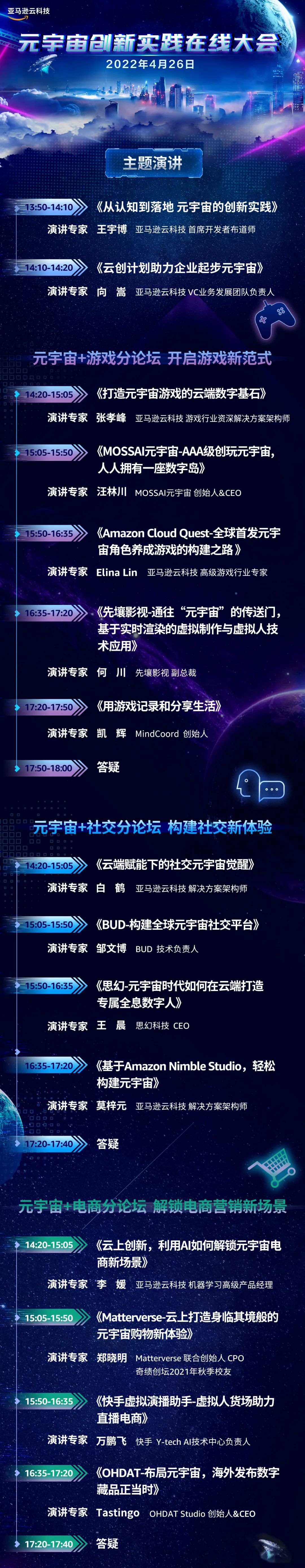 ,大会瞄准游戏、社交、电商行业,聚焦元宇宙的认知落地与创新实践,将开展三场异彩纷呈的论坛,由行业重磅嘉宾带你一起探索元宇宙的应用实践。