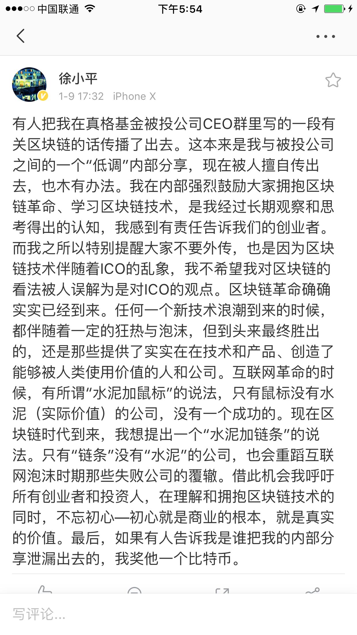有人把我在真格基金被投公司CEO群里写的一段有关区块链的话传播了出去。这本来是我与被投公司之间的一个“低调”内部分享,现在被人擅自传出去,也木有办法。