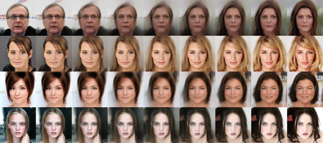 ▲ 由f-VAEs实现的两个真实样本之间的线性插值