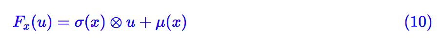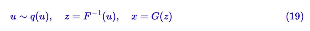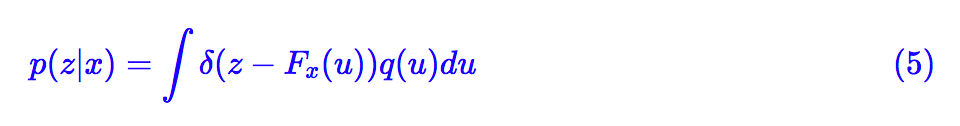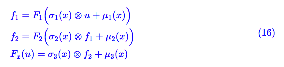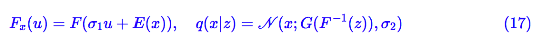 上面两个特例表明,式 (6) 原则上包含了 VAEs 和流模型。 Fx(u) 实际上描述了 u, x 的不同的混合方式,原则上我们可以选择任意复杂的 Fx(u) ,来提升后验分布的表达能力,比如: