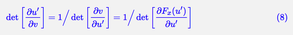 设 v=Fx(u′),u′=Hx(v),对于雅可比行列式,我们有关系: