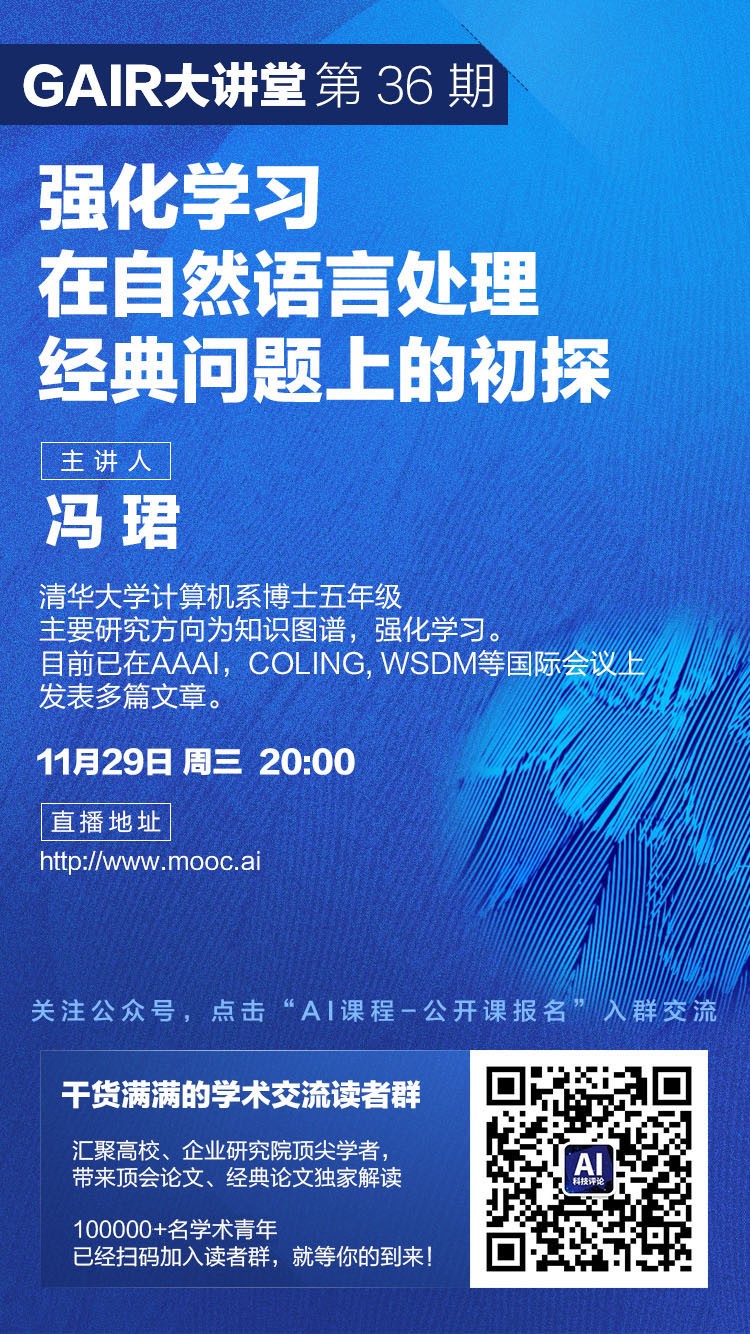 随着强化学习在机器人和游戏AI等领域的成功,该方法也引起了越来越多的关注。本次分享将介绍我们利用强化学习技术,更好地解决自然语言处理中的两个经典任务:关系抽取和文本分类。在关系抽取任务中,我们尝试利用强化学习,解决远程监督方法自动生成的训练数据中的噪音问题。在文本分类任务中,我们利用强化学习得到更好的句子的结构化表示,并利用该表示得到了更好的文本分类效果。这两个工作均发表于AAAI 2018。