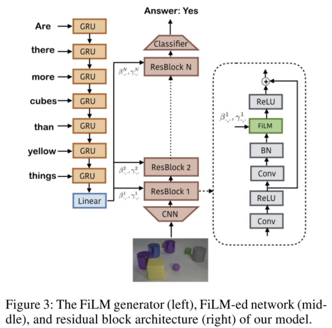 在CV中,有一项任务是visual reasoning answer,即看图回答所给问题。模型需要根据问题来提取图片中需要的特征进行计算,不同的问题提取的特征应该不同。一些研究提出根据不同的问题,对模型参数做出自适应地调整,从而做出不同的回答。