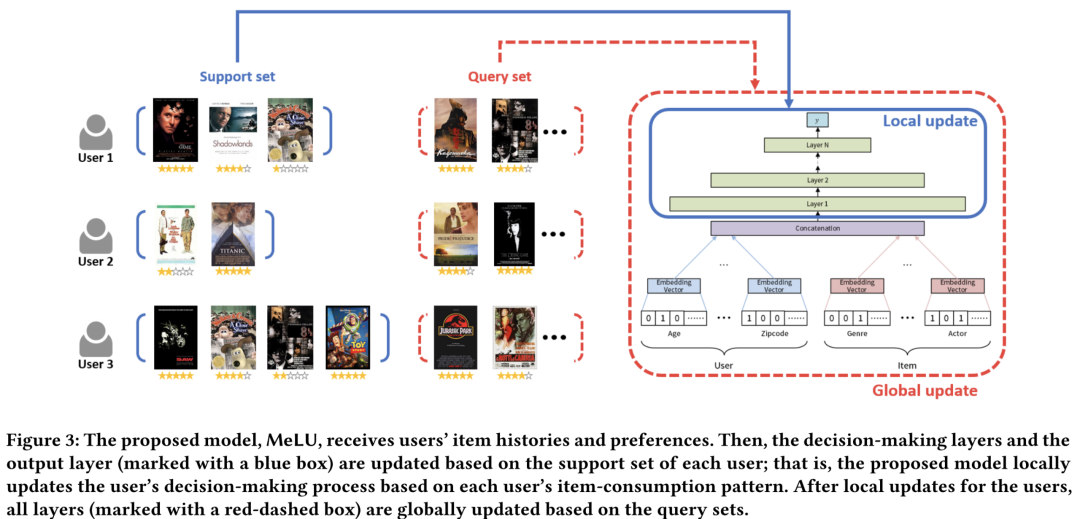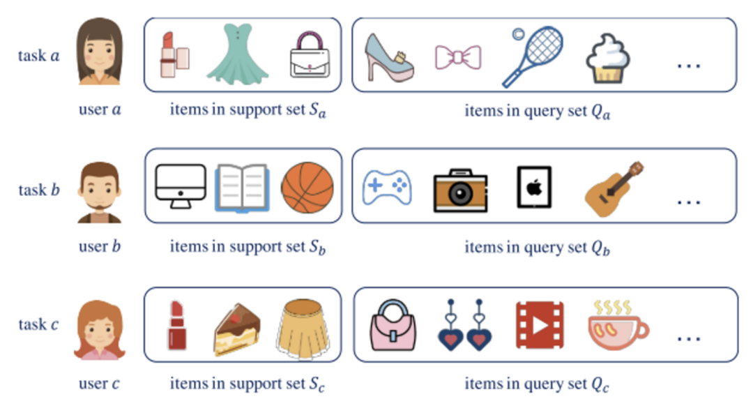 用户冷启动【Cold-Start】:用户冷启动问题是推荐系统中最重要的挑战之一,它是指向新/冷用户推荐商品的任务,该用户的交互记录在系统中非常少。如何从以往不同的用户的交互数据学到一个模型,使得面对新的用户时能够借助以往学习的知识以及少量的样本快速适应到新用户的推荐任务中,在初始给出好的推荐来更好地留住用户,也是模型自适应一个重要的应用场景。
