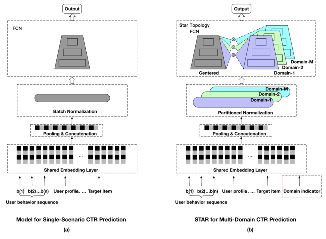 目前的推荐系统服从“Offline Training”->“Online Serving”的结构,这种框架假设在在线服务时对于用户的不同请求的数据的分布是稳定的,且与线下训练模型时的数据分布是一致的。然而这种假设在现实中并不总是成立的。例如,受时效性的影响,推荐系统中的召回模块给出的数据分布是随着时间不断变化的,比如在新闻推荐中,选举期间召回的政治类新闻占比大,奥运会期间则体育类新闻更多;此外用户的请求也可能来自不同的领域,例如在电商平台,同一个用户可能会输入查询词“裙子”或“手机”,不同的请求下得到的数据分布不同,甚至与训练用的数据分布也不同。对于推荐系统中的这种动态服务(Dynamic Serving)需求,一个解决上述问题的思路就是使用模型自适应(MA)。