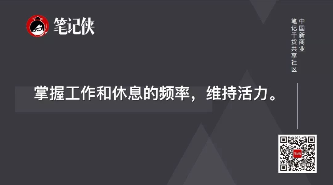 Tip 2:掌握工作和休息的频率,维持活力。在每45分钟或一小时后快速充电休息,释放上一个任务的紧张和焦虑,然后蓄势待发进行下一项任务。