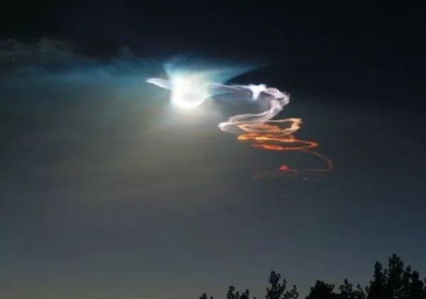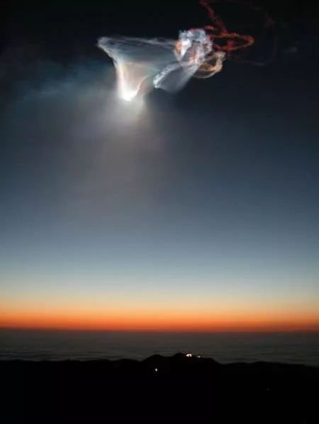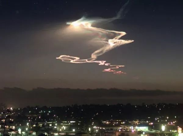 2017年12月22日,马斯克的 SpaceX 在南加州范登堡空军基地发射了猎鹰9号运载火箭(Falcon 9),火箭上运载着一些通信用的卫星。动图里的景观就是猎鹰9号引发的。