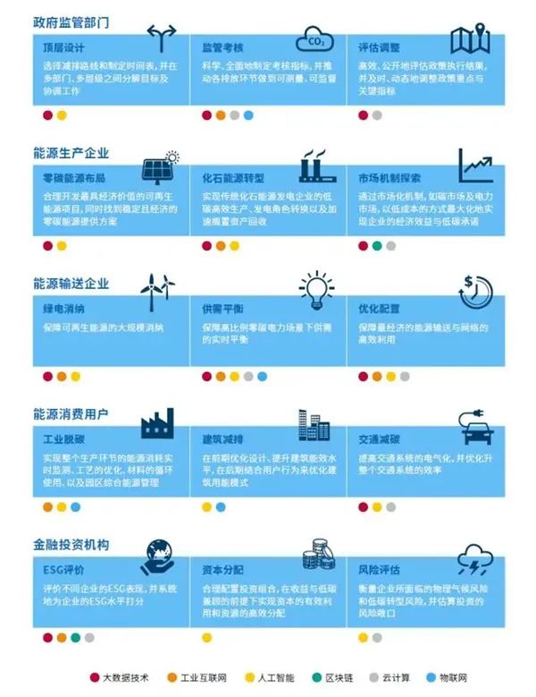对于能源消费企业,需要利用工业互联网、物联网、大数据技术采集、存储、处理能耗信息,提高合规能力及碳资产管理水平,并基于人工智能技术监测及优化能源消耗行为,提升用能效率减少碳排放。