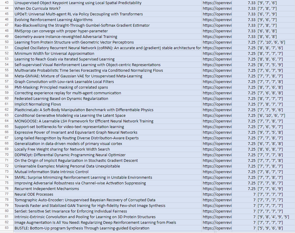 最后需要说明的是,论文最后的接收情况由领域主席拍板决定,就算论文平均得分小于6分也没事,一是要看你的论文在其对应的领域得分及排名,二是要看领域主席觉得你的论文是否有他觉得很Nice的亮点,如果某个点恰巧打动了领域主席,则论文被捞的可能性还是不小的。