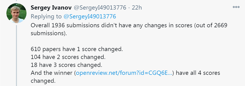 我们有篇论文的研究在几个基准上实现了SOTA,我们向ICLR提交了这篇论文。之后,就收到了4个评审意见,大部分意见要求进行消融研究,以及关于超参数设置的细节询问。这些意见非常正常,一点毛病都没有,真正有趣的事情发生在Rebuttal阶段: