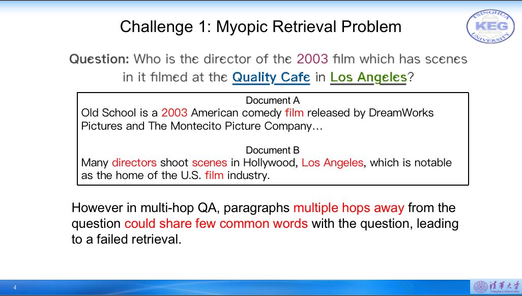 对于大规模开放领域阅读理解问题,传统的框架往往基于信息检索与端到端的黑盒阅读理解模型。在复杂多跳问题上,仍然被短视检索、缺乏解释性等问题困扰。本次报告主要介绍了基于认知科学中的双过程理论,将人的思索过程连成认知图谱,并通过预训练语言模型与图神经网络解决以上问题。