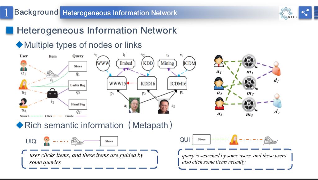 传统的图表示学习方法一般只针对同构的图,但是实际场景中的图往往都是异构的。在阿里电商场景下,由用户和商品构成的图不仅包含异构的节点(用户和商品),而且包含异构的边(用户和商品之间的多种交互行为,比如点击、购买等)。本报告主要介绍了这种包含异构节点和异构边的图的表示学习。
