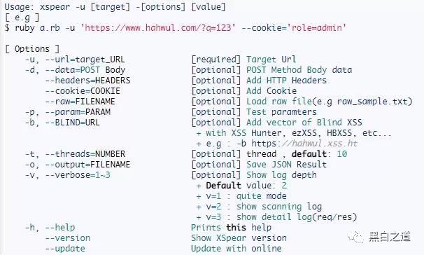 XSpear是一款基于RubyGems的的XSS漏洞扫描器。拥有常见的XSS漏洞扫描攻击测试功能。还可进行参数分析。