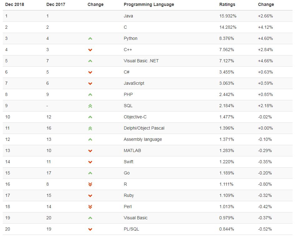 接下来看一下 12 月的编程语言排行榜 TOP 20:
