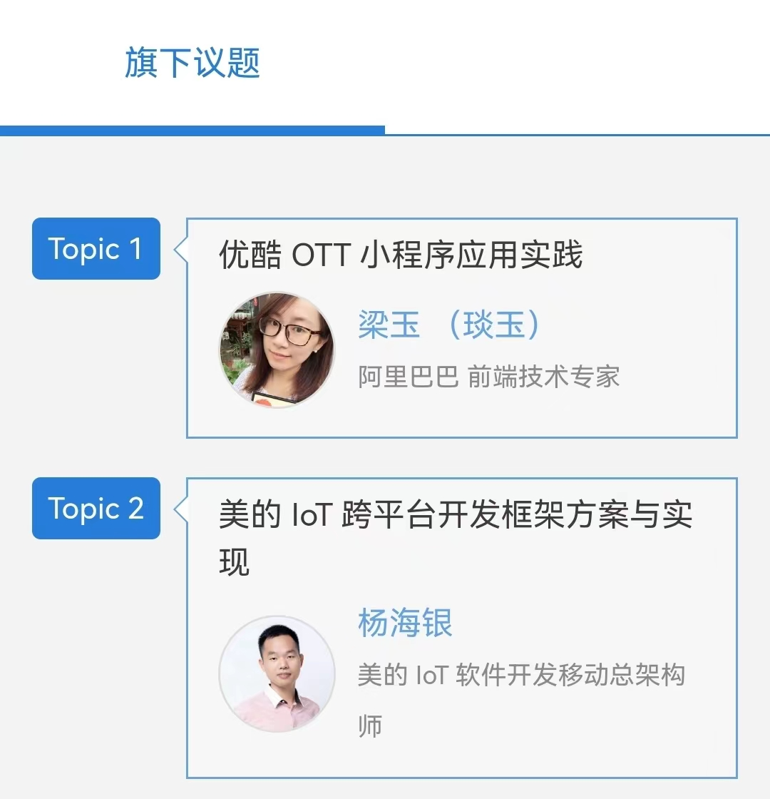 目前国内 IoT 设备应用场景还处于碎片化状态,为了促进 IoT 动态应用能力的进一步发展,即将举办的 GMTC 全球大前端技术大会(北京站)上,我们策划了「 IoT 动态应用开发」专题,邀请了蚂蚁集团高级技术专家王佐(入弦)担任出品人,已确定《优酷 OTT 小程序应用实践》和《美的 IoT 跨平台开发框架方案与实现》两个议题,更多精彩内容正在打磨上线中。