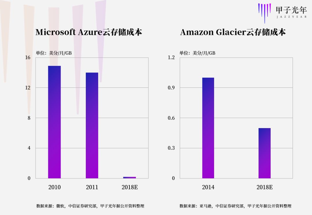 据IC Insights数据,MEMS[2]传感器的平均售价在2007年为2.57美元,2017年已降至0.97美元;微软Azure的云服务价格,从2011年的约14美分/月/GB,一路下降至2018年的约0.4美分/月/GB。这为工业企业进一步积累、采集数据和处理数据提供了支撑。