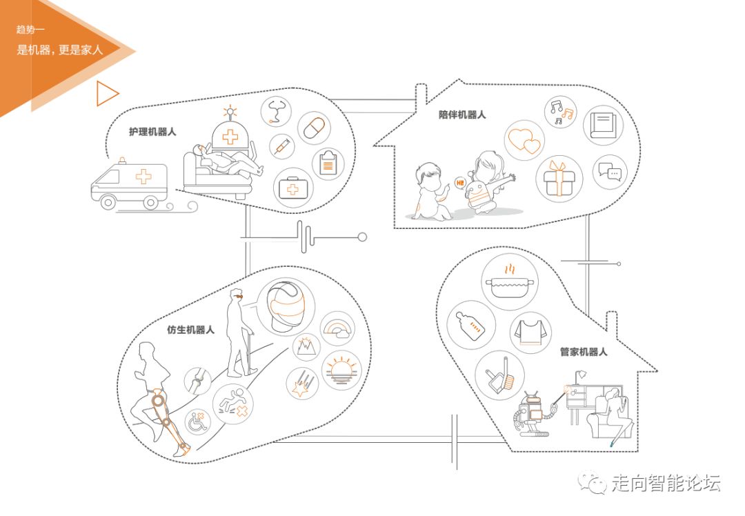 随着材料科学、感知人工智能以及5G、云等网络技术的不断进步,将出现护理机器人、仿生机器人、社交机器人、管家机器人等形态丰富的机器人,涌现在家政、教育、健康服务业,带给人类新的生活方式。