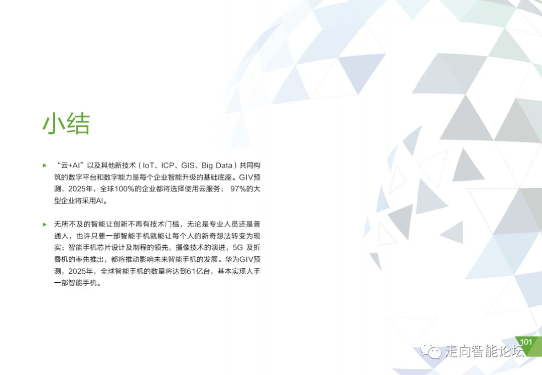 在“走向智能论坛”微信公众号回复“20190808”,可免费下载“华为全球产业展望GIV@2025:智能世界 触手可及”完整报告。