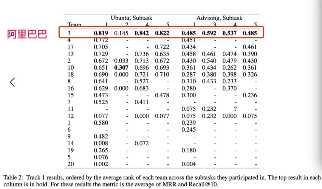 DSTC7由来自微软研究院、卡耐基梅隆大学的科学家于2013年发起,是人工智能领域的权威学术比赛。它要求参赛的AI模型依据给定的多轮对话历史从上万个句子中选出正确的回复。阿里AI在参与的2项比赛中拿下两个世界第一,击败了包括麻省理工学院、约翰霍普金斯大学、IBM研究院在内的近20支国际知名大学和研究机构的参赛队伍。